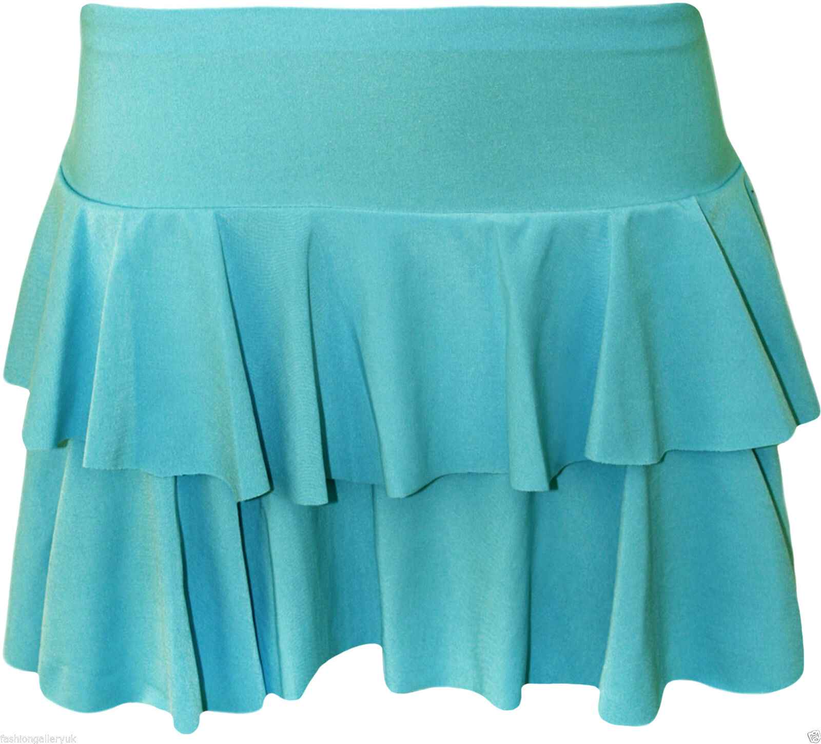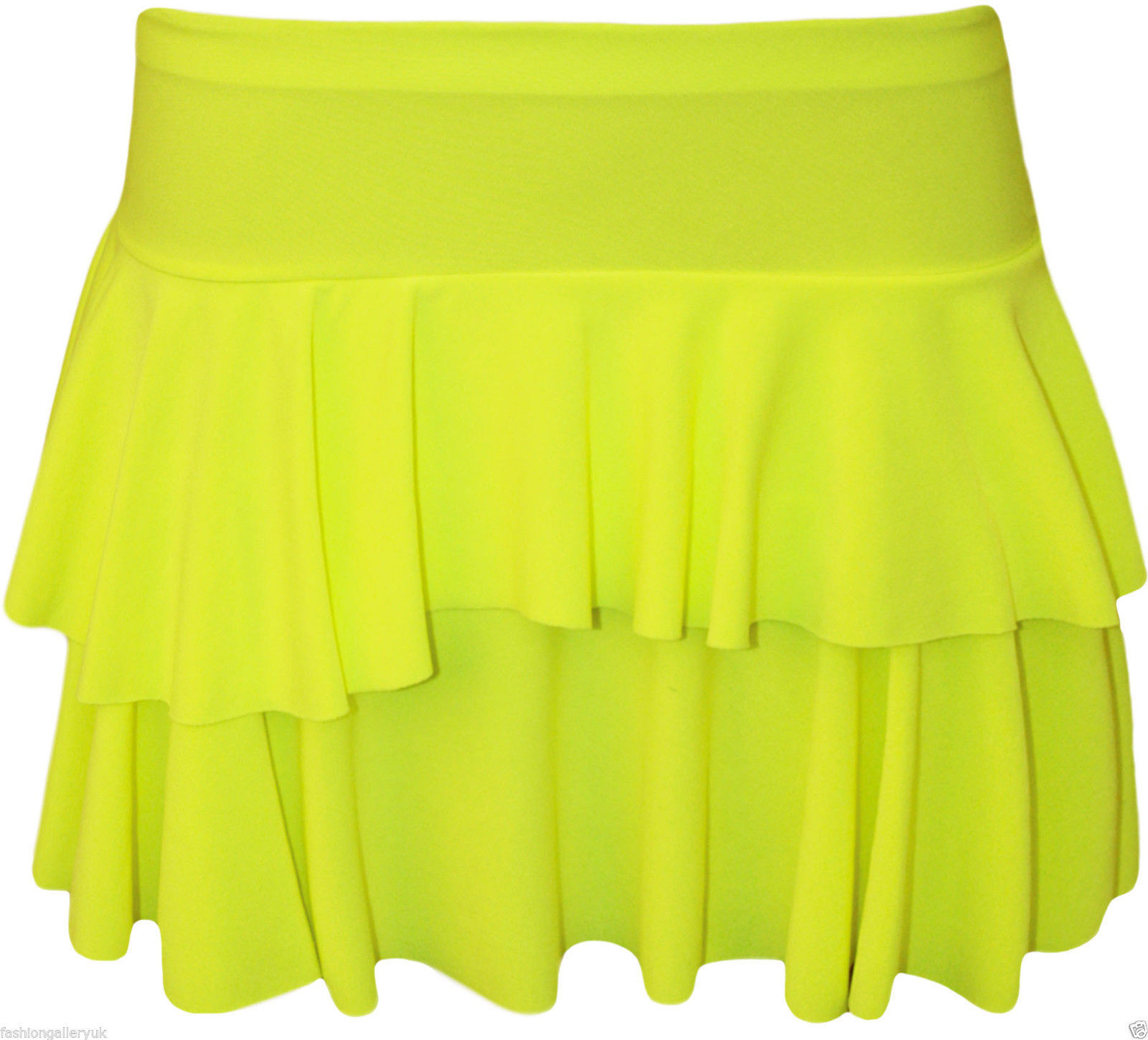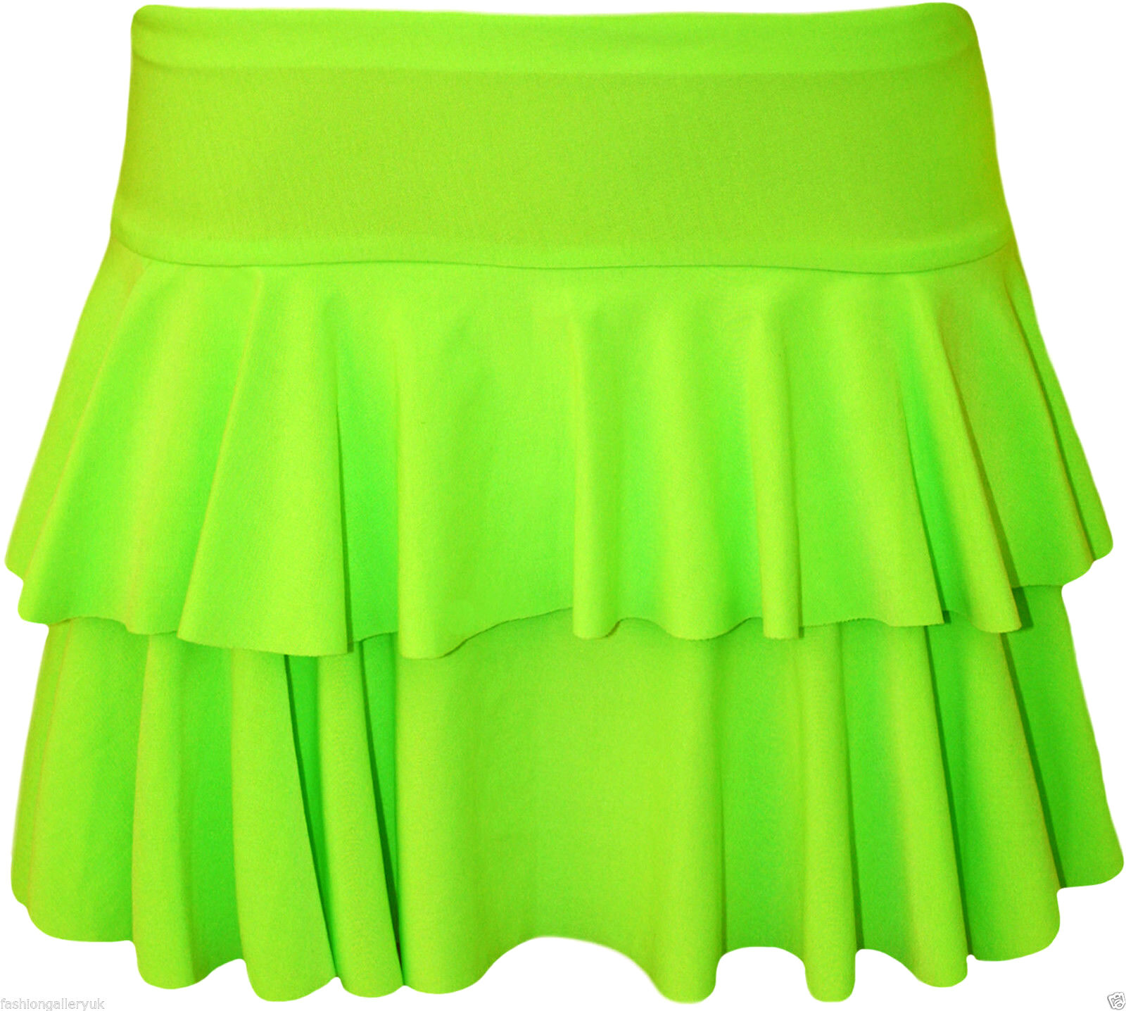 Girls Women’s Rara Two Tier Frill Gym Dance Ladies Neon Plain Mini Party Skirt