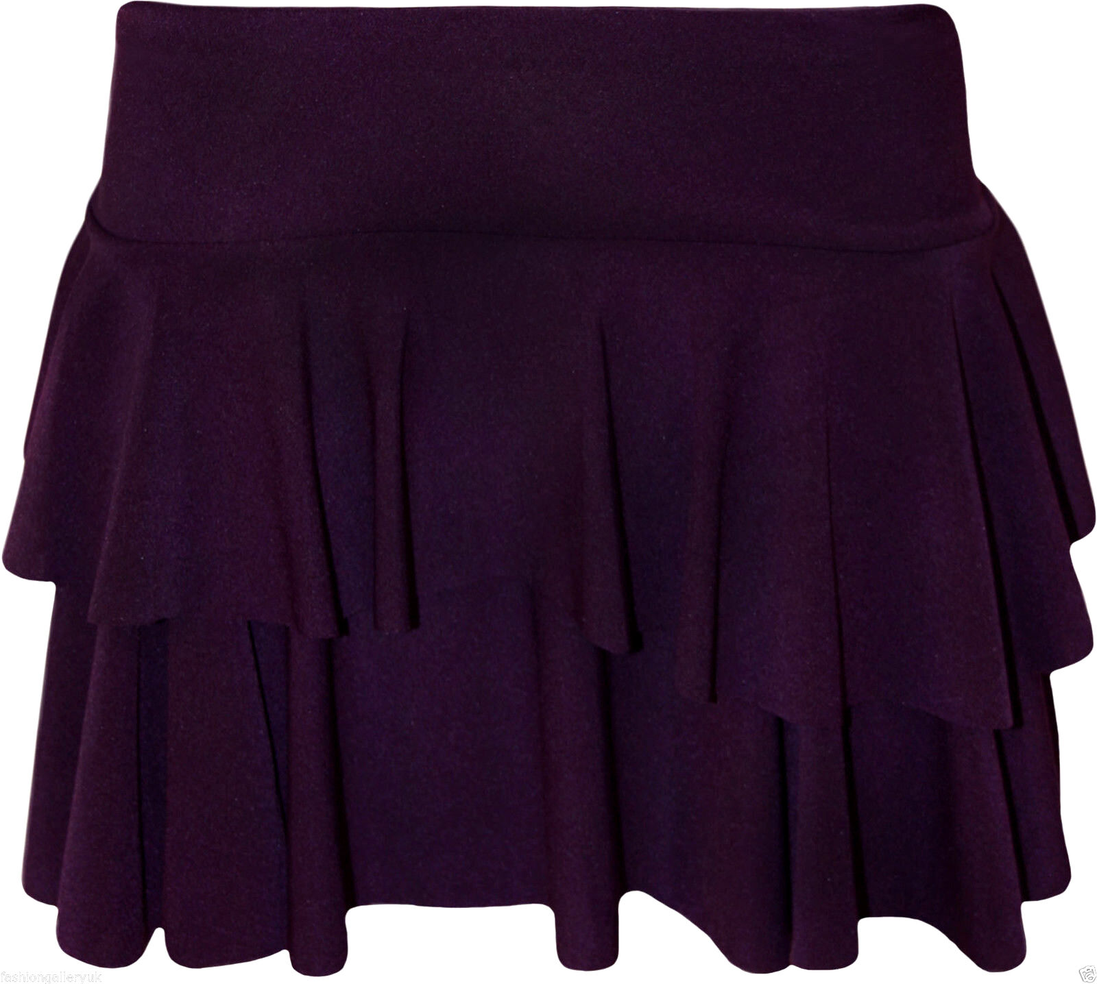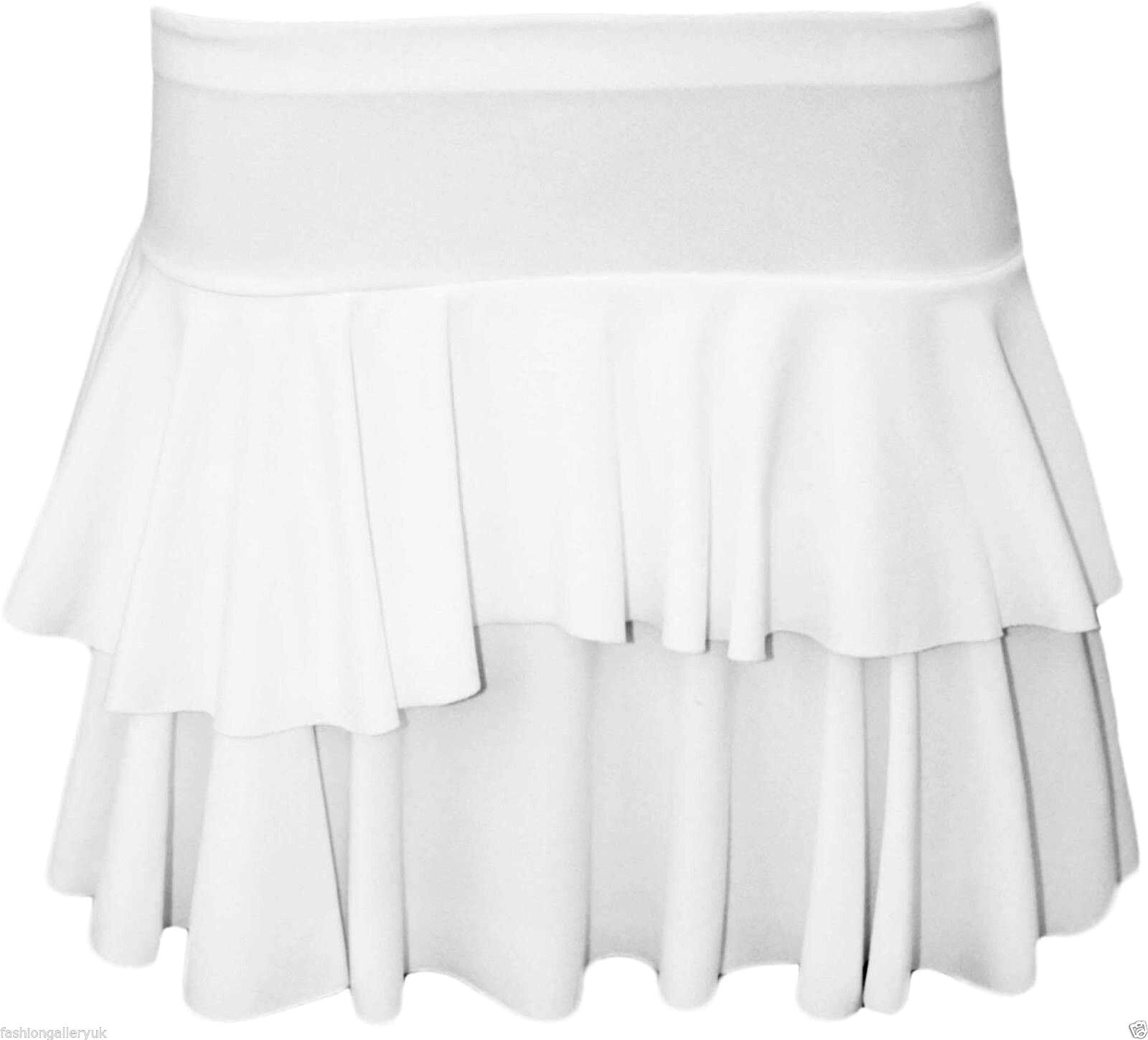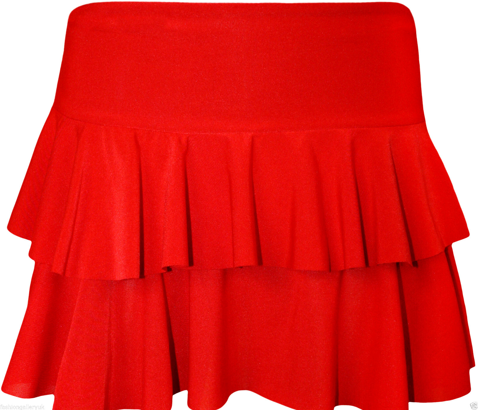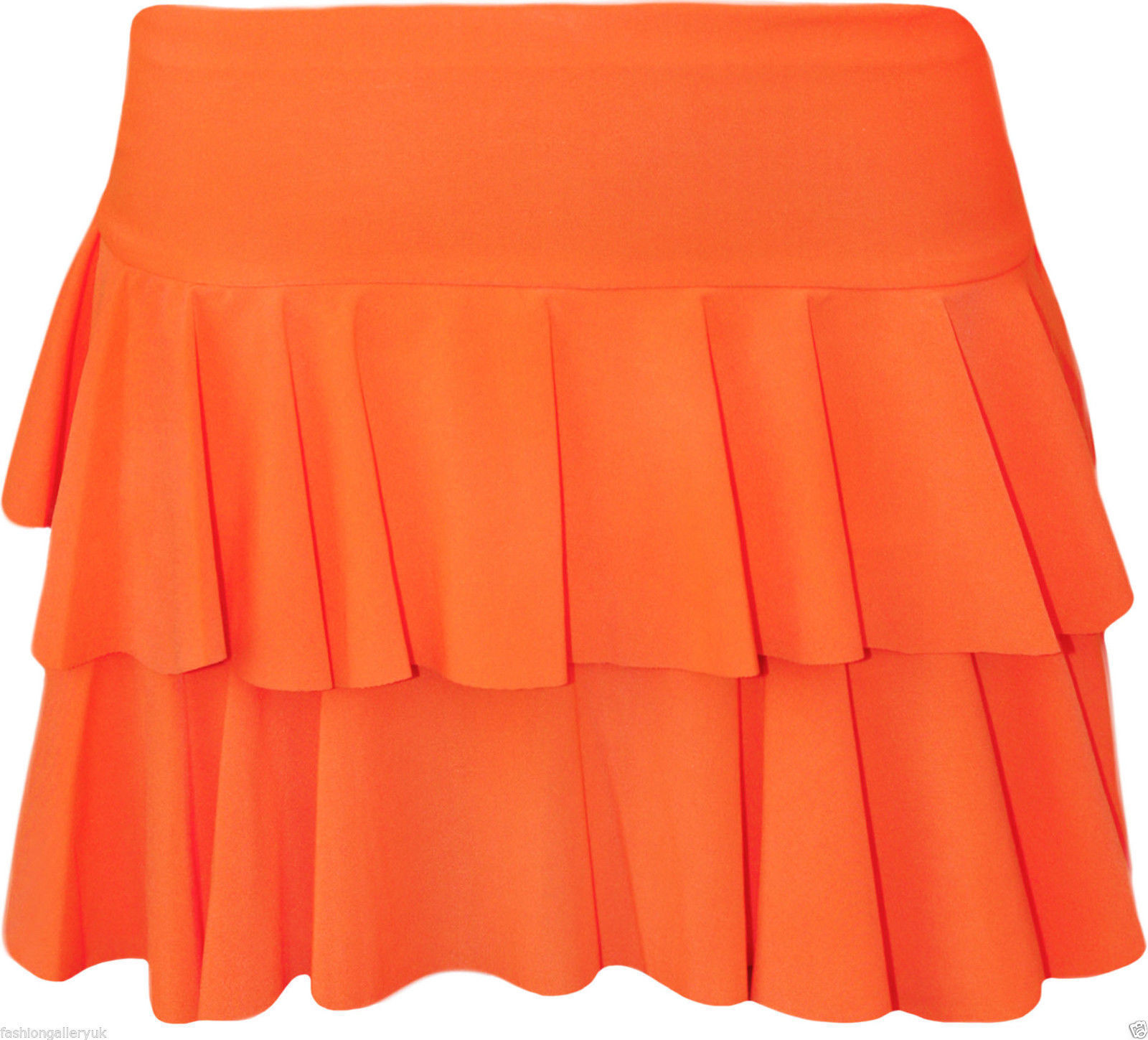 Girls Women’s Rara Two Tier Frill Gym Dance Ladies Neon Plain Mini Party Skirt